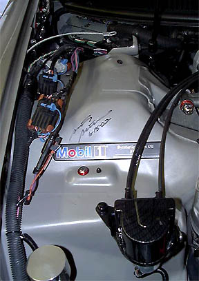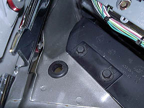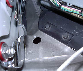 Step two: Drill a hole.  Drill a hole just forward of the ECM.  This seemed like the best place to run the wires out of the engine area to the wheel well.  See figure below: