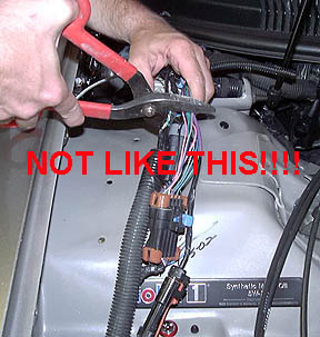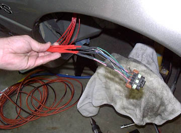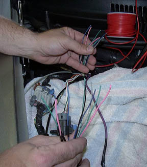 The above is a joke.. This is where you need to take your time.  Do ONE set at a time.  Be sure to mark duplicate colors so that you do not confuse them!  Unwrap all the old electrical tape from the first loom and inventory the wires.. Don’t mix them up!