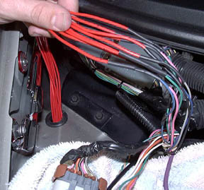 Here is a picture of all the wires (and vacuum hose) going through the grommet.
