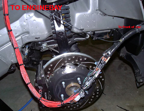 We then decided the way to do it would be to cut the loom, lengthen the wires, run them through a hole we would create then route the wires into the wheel well.
